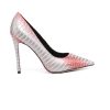 Дамски обувки от змийска кожа на ток в сребристо