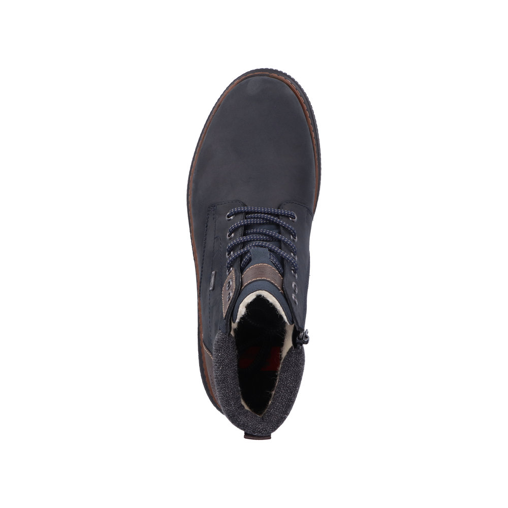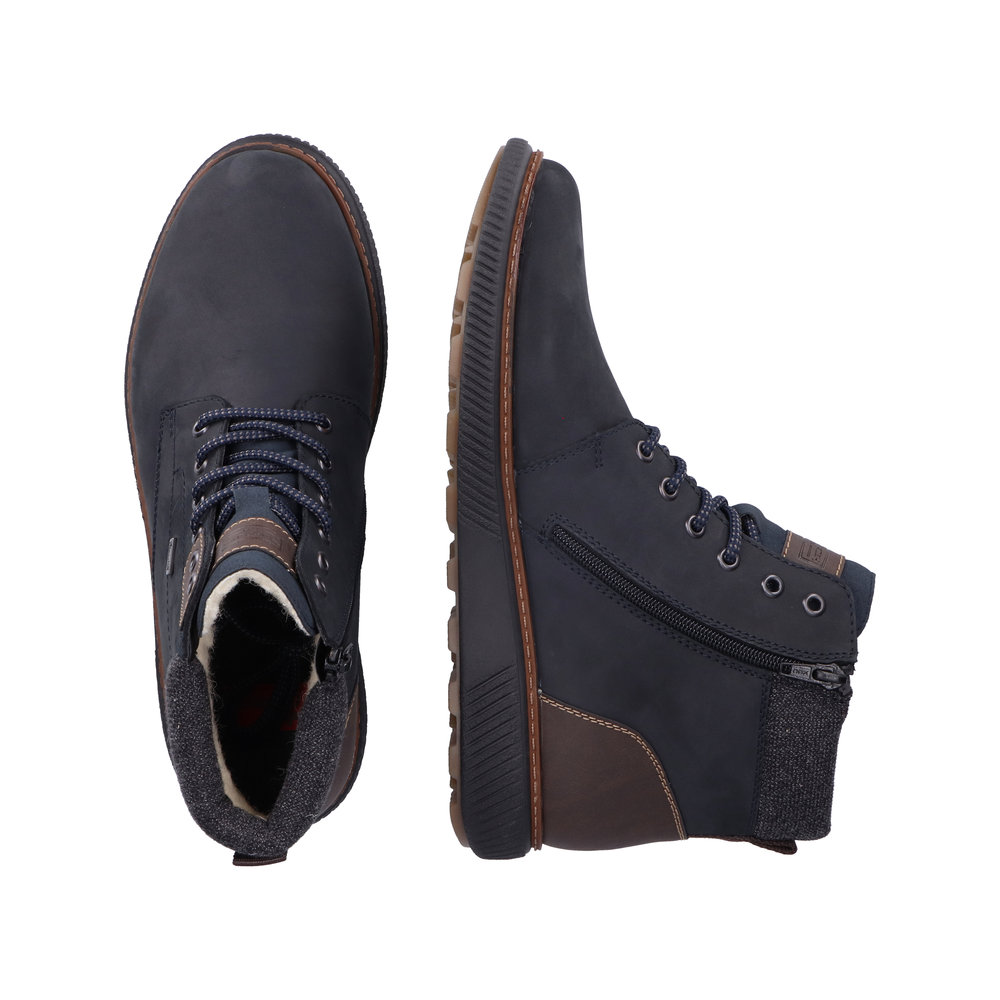 Висококачествени мъжки обувки на немската марка Rieker. Анатомичната стелка на тези обувки е гаранция за мекота и удобство, а висококачествените материи, от кото са произведени осигуряват оптимален климат на крака. Вземете в синьо и комбинирайте с най-разнообразни аутфити.